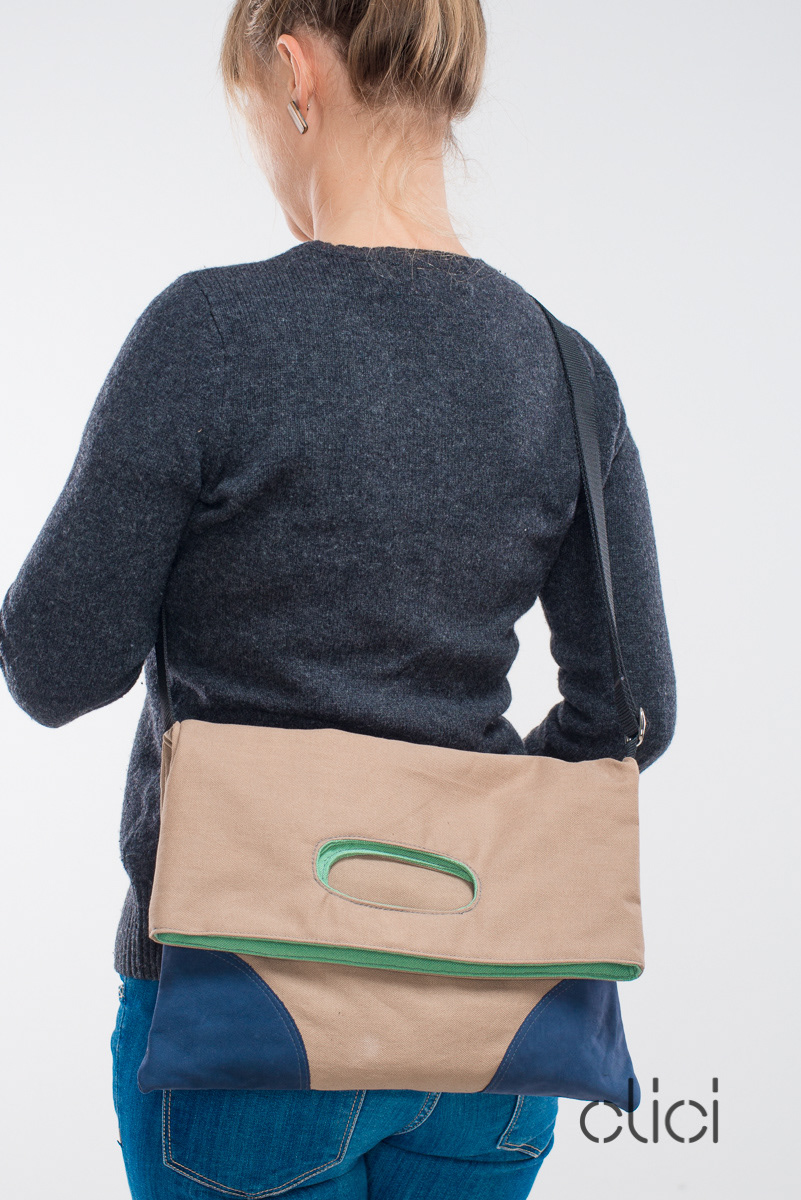 Mit dieser Klapptasche habt ihr 2in1: Klappe runter - fertig ist die kleine Umhängetasche mit praktischem Reißverschlussfach. Klappe rauf - mit den eingearbeiteten Taschengriffen tragt ihr eine große Tasche durch den Alltag. Praktisch, oder?